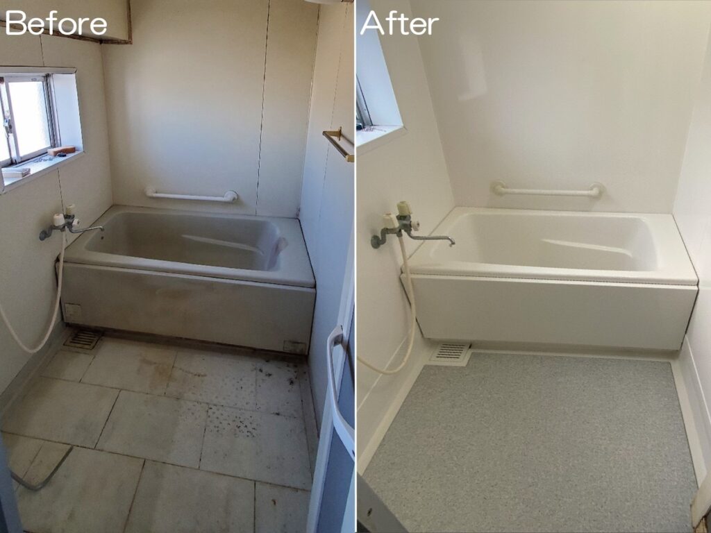 厚みのある浴室用床材を上張りする施工も人気と伺っています。